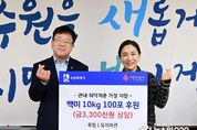 (뉴스인020 = 기자) 유치회관이 9월 30일 “취약계층 가정에 전달해 달라”며 수원특례시에 백미 100포를 기부했다. 수원시는 4개 구에 25가구씩, 총 100가구에 백미를 배분할 예정이다. 이날 수원시청에서 열린 전달식에는 유은수 유치회관 대표, 김현수 수원시 제1부시장 등이 참석했다. 유은수 대표는 “추석 명절에 작지만 따뜻한 마음이 이웃들에게 전해지길 바란다”며 “나눔 활동을 지속해서 이어가겠다”고 말했다. 김현수 제1부시장은 “어려움을 겪는 이웃을 위해 꾸준히 나눔 활동을 해 주시는 유치회관에 진심으로 감사드린다”며 “따뜻한 마음을 도움이 필요한 가정에 잘 전달하겠다”고 말했다.
