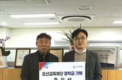 (뉴스인020 = 김성길 기자) 오산교육재단은 지난 15일 ㈜드림앤트 홍우석 대표로부터 오산시 지역 인재 육성을 위한 장학금 600만 원을 기탁받았다고 밝혔다. 홍우석 대표는 오산시 관내 고등학교를 졸업한 지역 출신 기업가로, 학생들의 학업 지원과 교육환경 개선에 보탬이 되고자 지난 2021년 12월 첫 기탁을 시작으로 매월 정기적인 장학금 후원을 이어오고 있다. 현재까지 누적 기탁액은 총 2,500만 원에 달하며, 2026년에도 추가로 600만 원을 기탁할 계획이다. 홍 대표는 “제가 성장한 오산시에 교육 지원을 통해 지역 인재 양성에 기여할 수 있어 뜻깊게 생각한다”며 “이번 장학금이 학생들이 자신의 꿈을 키우고 미래를 준비하는 데 작은 디딤돌이 되길 바란다”고 전했다. 이영빈 오산교육재단 상임이사는 “자신이 성장한 지역사회에 기부로 환원하는 모습은 매우 의미 있고 좋은 본보기”라며 “기탁해 주신 장학금은 학생들이 꿈을 키우고 미래를 설계하는 데 소중히 활용하겠다”고 말했다.