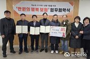 (뉴스인020 = 김성길 기자) 서울 강동구 길동주민센터는 14일, 서울강동우체국, 길동지역사회보장협의체와 함께 저소득 가구의 경제적 위기상황에 대응하기 위한 ‘만원의 행복 보험’ 지원 협약을 체결했다고 밝혔다. ‘만원의 행복 보험’은 만 15세부터 65세까지의 생계·주거급여 수급자 및 차상위계층 중 상해보험 가입이 어려운 복지대상자를 위해 마련된 사회안전망 사업이다. 보험 가입 시 대상자는 1년간 보장 혜택(유족위로금 최대 2,000만원, 재해수술보험금 최대 100만원, 재해입원보험금 1일 1만원)을 받을 수 있으며, 만기 시에는 보험료 전액(1만원)을 환급받는다. 이번 사업은 2026년 1월부터 12월까지 진행되며, 천호동 성결교회(담임목사 이기철)의 후원금이 보험료(1인당 1만원)로 사용된다. 지난해 처음으로 68명을 지원한 실적을 바탕으로, 올해는 약 100만원의 예산으로 최대한 많은 가구에 혜택이 돌아갈 수 있도록 추진할 계획이다. 특히 올해는 만 50세에서 65세 사이의 의료비 부담이 큰 계층을 우선 발굴하되, 만 15세에서 49세 대상자에 대해서도 지속적으로 연계·지원할 방침이다. 주민