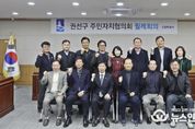 (뉴스인020 = 기자) 수원시 권선구는 지난 15일, 권선구청 상황실에서 각 동 주민자치회장들이 참석한 가운데 권선구 주민자치협의회 1월 월례회의를 개최했다. 이번 회의는 신년 첫 월례회의로, 권선구청장을 비롯해 주민자치회장 등 11 명이 참석해 새해 인사를 나누고, ▲2026년 주민자치활성화 사업 추진 ▲동별 주민자치센터 강사수당 현황 공유하며 주민자치회 운영에 대한 의견을 나누고, 시·구정 홍보사항을 공유하는 등 구정 발전을 위해 논의하는 시간을 가졌다. 이호 권선구 주민자치협의회장은 “2026년은 주민자치가 한 단계 더 도약하는 해가 될 것”이라며,“각 동 주민자치회가 서로 소통하고 연대해 주민이 체감할 수 있는 변화를 만들어 가겠다”라고 새해 각오를 밝혔다. 고호 권선구청장은 “주민자치는 행정이 아닌 주민이 지역의 주인이 되는 가장 중요한 제도”라며, “올해도 주민자치협의회와 각 동 주민자치회가 지역 문제 해결의 중심이 되어주시길 바라며, 구에서도 아낌없는 지원과 협력을 이어가겠다”라고 말했다. 권선구 주민자치협의회는 앞으로도 정기적인 월례회의와 소통을 통해 주민자치 역량을 강화하고, 주