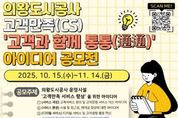 (뉴스인020 = 김성길 기자) 의왕도시공사는 고객만족(CS) 아이디어 공모전‘고객과 함께 통통(通通)’을 추진한다고 밝혔다. 공모전은 10월 15일부터 11월 14일까지 4주 동안 진행되며, 의왕도시공사 시설을 이용하는 고객 및 의왕시민 누구나 참여할 수 있다. 공모 주제는 서비스 과정, 서비스 환경, 디지털 서비스 등 3가지 분야로 공사 관리 시설의 고객만족 서비스를 향상 시키고 고객 불만족 요소를 해소할 수 있는 창의적이고 지속 가능한 서비스 개선 방안이다. 심사 기준은 창의성, 필요성, 실현 가능성, 효과성, 지속 가능성 등으로 심사 기준을 고루 충족한 우수 아이디어를 제안한 3인(최우수·우수·장려 각 1명)에 대해서는 총 50만원의 상금(의왕사랑상품권)과 상장이 수여될 예정이다. 아울러, 공사는 공모전을 통해 제안되는 우수 아이디어를 현장 실현 가능성 등을 검토하여 실제 고객서비스 개선에 적극 반영한다는 계획이다. 공사 노성화 사장은“이번 공모전은 시민과 고객이 행복한 의왕도시공사를 만들기 위한 시민참여·소통 프로젝트의 일환”이라며 “참신하고 혁신적인 아이디어를 가진 시민 여러