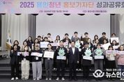 (뉴스인020 = 김성길 기자) 용인특례시는 1일 오후 시청 컨벤션홀에서 ‘2025 용인청년 홍보기자단 성과공유회’를 개최했다고 2일 밝혔다. 이번 행사는 지난 3월부터 용인청년 홍보기자단이 제작한 홍보 콘텐츠 성과를 공유하고 우수 활동자를 격려하기 위해 마련됐다. 행사에는 이상일 시장을 비롯한 홍보기자단 30명이 참석했다. 이 시장은 인사말을 통해 “올 한 해 용인시 청년정책을 다양한 시각에서 평가하고, 또 여러 방식으로 시민들에게 잘 알리는 활동을 해 준 홍보기자단 여러분께 진심으로 감사드린다”고 말했다. 이 시장은 “저는 25년간 중앙일보 기자 생활을 하며 관찰력과 상상력, 그리고 문제 의식을 키웠다고 생각하는 데 이런 노력과 경험이 시장으로 활동하는 데 큰 도움이 되고 있다”며 “여러분도 기자단 일원으로 활동하면서 많은 경험을 쌓았을터, 그 경험이 향후 여러분이 어떤 길을 걷더라도 분명 보탬이 될 것”이라고 말했다. 이 시장은 “앞으로 어디에서 활동하든 기자단으로 일할 때의 문제의식을 가지고 관찰하고 상상하며 더 나은 방향을 제안하는 청년으로 성장해 주길 바란다”고 했다. &nb
