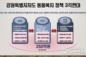 (뉴스인020 = 김성길 기자) 강원특별자치도는 2월 20일 오후 2시 강릉에 위치한 도 반려동물지원센터에서 ‘강원형 동물복지 정책’을 발표하고, 복지‧의료‧산업‧관광을 아우르는 4대 전략을 본격 추진한다고 밝혔다. - 이번 정책은 반려동물 양육이 일상화된 사회 변화에 대응해 공공의 역할을 강화하기 위해 마련됐다. 현재 전국 반려 가구는 591만 가구로 전체 가구의 25% 이상을 차지하고 있으며, 반려동물(개‧고양이)은 약 800만 마리 수준으로 추산된다. - 이 자리에는 김진태 도지사를 비롯해 강원경제진흥원, 강원관광재단, 도수의사회장, 강원대 수의과대학장, 군견훈련소 교관, 강릉 주민, 강릉동물보호센터장 등 각계 전문가와 현장 관계자들이 참석했다. 참석자들은 정책 방향을 공유하고 반려동물지원센터 공간 확대 필요성, 입양 이후 보호자와 유기견을 위한 교육‧관리 지원 강화 방안 등 다양한 의견이 논의됐다. 김진태 지사는 “동물복지를 하나의 정책 아젠다로 삼아 보다 체계적으로 추진하려고 한다”며, “이를 위해 각 기관과 전문가들의 협력이 반드시 필요하다”고 밝혔다. 이어 “이