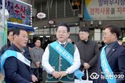 (뉴스인020 = 김성길 기자) 김영록 전라남도지사는 22일 광주 말바우시장을 찾아 전남·광주 행정통합 비전을 공유하고, 지역 상권과 경제에 미칠 영향, 기대효과 등에 대해 다양한 의견을 청취했다. 말바우시장은 담양·곡성·장성 주민들도 농수산물을 직접 구매하거나 판매하는 광주 최대 전통시장으로, 전남·광주 북부권 지역경제 흐름과 소비심리를 체감할 수 있는 대표 상권이다. 김영록 지사는 이날 현장에서 박창순 말바우시장상인회장과 한승주 전남도상인연합회장 등을 만나 전남·광주 행정통합 추진에 따른 애로사항과 건의사항을 경청했다. 이어 온누리상품권으로 지역 특산품을 구매하고 이용객과 인사를 나누며 전통시장 이용을 당부했다. 또한 전남·광주 북부권 전통시장 활성화 방안에 대해서도 현장 의견을 수렴했다. 김영록 지사는 “전남·광주 행정통합은 지역 상권을 발전시키는 핵심 성장 동력으로, 새로운 도약의 기반을 마련할 것”이라며 “전통시장이 활기를 되찾도록 많은 이용 바란다”고 당부했다.