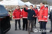 (뉴스인020 = 김성길 기자) 경상남도가 23일 새벽, 사흘째 진화 작업이 이어지고 있는 함양군 마천면 산불 현장을 방문해 진화 상황을 살피고 현장 관계자들을 격려했다. 박완수 도지사는 이날 새벽 함양군 산불 현장 통합지휘본부를 찾아 김민석 국무총리, 박은식 산림청장 직무대리 등 현장 관계자들과 함께 현재까지의 진화 경과를 파악하고 향후 대응 방향을 논의했다. 특히 산불 현장 인근을 찾아 육안으로 화선 상태와 산불 확산 추이를 확인하는 등 현장 상황을 면밀히 살폈다. 박 지사는 현장에서 “도내 가용 가능한 헬기와 장비, 인력을 신속히 투입해 주불 진화와 확산 차단에 최선을 다해달라”고 당부했다. 이어 “산악 지형상 갑작스러운 강풍으로 인해 산불 확산 위험이 있는 만큼, 진화 인력의 안전 관리에 철저를 기해달라”고 덧붙였다. 또한, “인명 피해가 발생하지 않도록 주민 대피 상황을 면밀히 관리하고, 산림청·소방청·군 등 유관 기관과 도내 관련 부서 간 긴밀한 연락 체계를 유지해 공조를 강화해달라”고 강조했다. 이어 박 지사는 마을 주민들이 대피해 있는 임시 구호 시설을 방문해 주민들을 위로하고 불편