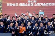 (뉴스인020 = 김성길 기자) 제42회 전라남도 의용소방대 기술경연대회가 4일 담양군 추성경기장에서 열렸다. 전남소방본부와 전남도 의용소방대연합회가 주관하고 담양군에서 후원한 이날 행사에는 김영록 전남도지사와 김태균 전남도의회 의장, 22개 시군 의용소방대와 가족 등 4천여 명이 참석했다. 기술경연대회는 재난현장에서 소방의 파트너로 활동하는 1만여 명의 의용소방대원의 대응 능력 향상과 상호 우호 증진을 위해 매년 추진되고 있다. 올해는 22개 시군 대표로 352명의 의용소방대원이 출전해 ▲4인조법 ▲소방호스 전개 및 회수 ▲심폐소생술 ▲단체줄넘기, 4개 종목에서 기량을 펼쳤다. 김영록 지사는 “푸른 대숲의 바람이 속삭이고, 사람과 자연이 어우러지는 품격의 고장 담양에서 기술경연대회가 개최돼 정말 뜻깊다”며 “지역을 지키는 안전 파수꾼 의용소방대원에게 감사하다”고 말했다. 주영국 전남소방본부장은 “전남소방은 1만여 명의 의용소방대와 함께 재난으로부터 도민의 안전을 지키기 위해 최선을 다하겠다”고 강조했다.