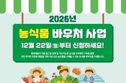 (뉴스인020 = 김성길 기자) 화성특례시는 저소득 취약계층의 영양 개선과 지역 농산물 소비 활성화를 위해 22일부터 ‘2026년 농식품 바우처 지원사업’ 신청을 받는다. 지원 대상은 생계급여(기준 중위소득 32% 이하) 수급자 중 임산부, 영유아, 아동, 청년을 포함한 가구로 1인 가구 월 4만 원, 4인 가구 월 10만 원 등 가구원 수에 따라 차등 지원된다. 지원 기간은 1월부터 12월까지 12개월이다. 지원 품목은 국산 채소, 과일, 육류, 잡곡, 두부류 등 신선 농산물을 구매할 수 있는 전자카드 형태로 제공되며, 농협 하나로마트, 편의점 등에서 사용할 수 있다. 지원 신청은 22일부터 주소지 관할 출장소 및 읍·면 행정복지센터를 방문하거나 온라인, ARS(☎1551-0857) 등을 통해 다양한 경로로 신청할 수 있으며, 2025년 사업 이용 가구로 지원 자격요건을 충족하는 경우 별도의 신청 절차 없이 자동 신청 처리될 예정이다. 기타 자세한 사항은 화성시청 농식품유통과 및 주소지 관할 출장소·읍·면 행정복지센터로 문의하면 된다. 신태식 농식품유통과장은 “이번 농식품 바우처 지