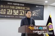 (뉴스인020 = 김성길 기자) 서울특별시의회 도시안전건설위원회 부위원장으로 활동하고 있는 김용호 의원(국민의힘, 용산1)은 12월 12일 서울시의회 별관 제2대회의실에서 열린 ‘청소년 의회 교육프로그램 성과보고회’에 참석해 축사를 전하며 청소년들의 의정 체험 성과를 격려했다. 이날 성과보고회는 서울시의회가 추진한 청소년 의회 교육프로그램의 운영 성과를 공유하고 향후 발전방안을 논의하기 위해 마련됐으며, 김 의원을 비롯해 문성호 시의원, 의회사무처 관계자, 청소년 의회 참여 청소년과 학부모, 교사 등 총 40여 명이 참석했다. 김 의원은 지난 9월 서울시의회 본회의장에서 진행된 ‘찾아오는 청소년 의회아카데미’ 프로그램에 참여한 신용산초등학교 5학년 및 흥인초등학교 6학년 학생들도 격려한 바 있다. 김 의원은 축사를 통해 “청소년 의회 교육프로그램은 교과서 속 민주주의를 넘어, 청소년들이 실제 의회 운영과 토론, 합의 과정을 몸소 체험할 수 있는 매우 뜻깊은 정책”이라며 “이러한 경험이 미래 시민이자 민주사회의 주역으로 성장하는 데 큰 밑거름이 될 것”이라고 강조했다. 이어 김 의원은 “청소년들이 지