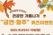 (뉴스인020 = 김성길 기자) 평택시 송탄보건소에서 오는 10월 1일부터 13일까지 시민 누구나 참여할 수 있는 ‘건강한 가을나기 금연·절주 퀴즈 이벤트’를 진행한다. 이번 퀴즈 이벤트는 정보무늬(QR코드)를 활용 간편하게 참여할 수 있으며 금연·절주의 필요성과 건강관리 정보를 흥미로운 퀴즈 형식으로 접할 수 있도록 기획됐다. 퀴즈를 완료한 참여자 중 정답자 100명을 추첨해 금연 홍보물(보조배터리)을 증정하며 당첨자는 10월 15일 개별 문자로 안내된다. 상품은 10월 16일부터 22일까지 송탄보건소 1층 헬스케어상담센터 내 금연클리닉에서 수령할 수 있다. 송탄보건소 관계자는 “모든 시민이 금연과 절주의 필요성을 이해하고 건강한 생활을 실천하는 계기가 되길 바란다”라고 전했다.