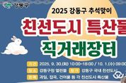 (뉴스인020 = 김성길 기자) 강동구는 2025년 추석을 맞이해 오는 9월 30일과 10월 1일 이틀간 강동구청 열린뜰에서 ‘친선도시 특산물 직거래장터’를 개최한다고 29일 밝혔다. 이번 행사는 강동구가 전국 지자체와 맺은 교류 협력을 바탕으로, 지역 농가의 판로 확대와 도농 상생을 도모하기 위해 마련됐다. 올해 새롭게 친선결연을 맺은 강원도 영월군을 포함해 총 21개 국내 도시가 참여하며, 직접 산지에서 올라온 35개 농가가 다양한 특산물을 선보일 예정이다. 특히 원주 찐빵, 홍천 한과, 거창 곶감, 의성 복숭아, 완도 미역 등 전국 각지에서 올라온 신선하고 품질 좋은 농특산물을 시중가 대비 최대 40% 저렴한 가격에 구매할 수 있어 구민들의 많은 관심이 기대된다. 이번 장터는 9월 30일 오전 10시부터 오후 6시까지, 10월 1일 오전 9시부터 오후 5시까지 운영되며, 누구나 자유롭게 방문해 구매 가능하다. 이수희 강동구청장은 “이번 직거래장터는 구민들에게는 믿을 수 있는 먹거리를 제공하고, 참여 농가에는 안정적인 판로를 마련해주는 뜻깊은 행사”라며, “앞으로도 친선도시와의 협력을 통해 지속