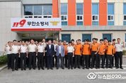 (뉴스인020 = 김성길 기자) 무안군통합방위협의회는 추석 명절을 앞두고 10월 2일 지역 방위와 군민 안전을 위해 묵묵히 헌신하고 있는 군부대, 예비군, 소방서를 방문해 위문금을 전달하고 관계자들을 격려했다. 김산 군수는 이날 무안소방서와 제96보병여단 1대대를 차례로 방문해 각종 재난 현장에서 최선을 다해온 소방대원들과, 지역 방위 임무를 충실히 수행하고 있는 장병들의 노고에 깊은 감사를 전했다. 김산 군수는 “군민 모두가 평안하고 따뜻한 명절을 보낼 수 있는 것은 각자의 자리에서 맡은 바 책무를 충실히 이행하고 계신 덕분”이라며 “앞으로도 힘을 모아 안전한 무안군을 만드는 데 최선을 다해 주시길 바란다”고 당부했다. 한편, 무안군통합방위협의회는 매년 명절을 맞아 유관기관을 방문해 위문 활동을 꾸준히 이어오고 있으며, 향후에도 군부대·경찰·소방을 비롯한 안보·재난 대응 기관들과 긴밀히 협력해 통합방위 역량과 군민 안전을 더욱 강화할 계획이다.