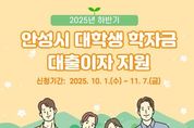 (뉴스인020 = 김성길 기자) 안성시는 오는 10월 1일부터 11월 7일까지 ‘2025년도 하반기 안성시 대학생 학자금 대출이자’ 지원 신청을 받는다. 지원 대상은 공고일(2025. 10. 1.)기준으로 안성시에 주민등록 주소를 두고 재학(휴학 포함)중인 대학(원) 재학생(휴학생)이다. 지원 대상자로 선정되면 대상자가 한국장학재단에서 대출받은 학자금에 대한 2025년 상반기(1월~6월) 발생 이자를 안성시가 지급하게 된다. 지급은 대출 계좌 원리금에서 차감하는 방식으로 진행되며, 지원 내역은 12월 지급이 확정된 시점에 한국장학재단 인터넷 홈페이지에서 확인할 수 있다. 신청 방법은 주소지 읍·면·동 행정복지센터 또는 안성시청(미래교육과)으로 방문하여 접수하면 된다. 안성시 관계자는 “학자금 대출이자 지원 사업을 통해 대학생들의 학업 부담을 완화하고, 학업에 전념할 수 있는 환경을 조성하는데 도움이 되길 바란다”고 전했다.