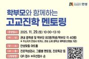 (뉴스인020 = 김성길 기자) 안성시는 오는 11월 29일 오전 10시, 안성맞춤 아트홀에서 관내 중학생과 학부모를 대상으로 ‘학부모와 함께하는 고교진학 멘토링’을 실시한다고 밝혔다. 이번 멘토링은 ‘진로탐색, 함께 걸어요! 학부모와 자녀가 함께 만드는 고교진학 로드맵’ 이라는 슬로건 아래, 학생들이 자기주도적으로 진로를 설계하고, 학부모가 효과적으로 자녀의 진로를 선택할 수 있도록 돕는 데 중점을 두고 있다. 특히, 가정과 지역사회가 함께하는 진로교육 협력체계를 구축함으로써, 지역 교육공동체 역량 강화와 진로교육 환경 개선을 동시에 도모할 계획이다. 본 프로그램은 안성시 주소지를 두고 있거나 관내 중학교 재학 중인 중학생과 학부모 총 80명을 대상으로 하며, 신청은 10월 1일(수)부터 11월 7일(금)까지 QR코드를 통해 선착순 접수가 가능하다. 행사는 ▲진로 특강 및 검사 해석(80분) ▲커리어맵 실습(30분) ▲그룹별 멘토링(60분) 등이 진행되며, 전문 강사와 멘토가 참여해 실질적이고 체계적인 진로·진학 설계를 돕는다. 그룹 멘토링은 참가 학생 40명을 8명씩 5개 그룹으로 나누어 맞춤형 지도가 이루