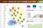 (뉴스인020 = 김성길 기자) 국토교통부와 한국부동산원(원장 손태락)은 '25년 3분기 지가변동률 및 토지거래량을 발표했다. ★ 지가변동률 '25년 3분기 전국 지가는 0.58% 상승했다. 상승폭은 '25년 2분기(0.55%) 대비 0.03%p 확대, '24년 3분기(0.59%) 대비 0.01%p 축소된 것으로 나타났다. '25년 9월 지가변동률은 0.20%로, '25년 8월(0.19%) 대비 0.01%p, '24년 9월(0.19%) 대비 0.01%p 높은 수준으로 나타났다. (지역별) '25년 3분기 지가변동률은 수도권(0.74% → 0.80%)은 '25년 2분기 변동률 대비 높은 수준, 지방권(0.22% → 0.19%)은 낮은 수준을 보였다. (시·도) 17개 시·도 중 서울(1.07%)이 전국 평균(0.58%)을 상회했다. (시·군·구) 서울 용산구 1.96%, 서울 강남구 1.68%, 서울 서초구 1.35% 등 252개 시군구 중 40개 시군구가 전국 평균을 상회했다. 또한, 252개 시군구 중 199개 시군구가 0.00% ~ 0.80% 수준을 나타내었으며, 주로
