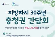 (뉴스인020 = 김성길 기자) 행정안전부는 10월 28일 충청북도 청주시립미술관에서 민선 지방자치 30주년 충청권 간담회를 개최한다고 밝혔다. 이번 간담회는 지난 8월과 9월에 열린 강원권·경상권·수도권 간담회에 이어 열리는 네 번째 행사로, 충청권 주민과 함께 지방자치 30주년의 성과를 돌아보고 미래 방향을 논의하는 자리이다. 충청권 간담회는 청년센터, 청년정책협의체 등 충청권에서 활동하는 청년을 포함한 주민 50여 명이 참석해 미래세대의 목소리가 중심이 되는 지방자치 소통의 장이 될 것으로 기대된다. 간담회에서는 ▲주민 참여 활성화, ▲주민 체감형 행정서비스, ▲자치분권 실현, ▲지방의회의 역할 등을 주제로, 청년들이 지방자치 현장에서 직접 경험한 사례를 공유하고, 지역 현안 등에 대한 다양한 의견을 나눌 예정이다. 아울러 현장에서는 지방자치 퀴즈, ‘다음 30년, 내가 바라는 지방자치는 (네모)다’ 등 이벤트와 모바일 실시간 의견 수렴 방식을 통해 참여자 누구나 자유롭게 의견을 제시할 수 있다. 행정안전부, 충청북도는 간담회를 통해 청취한 의견을 바탕으로 민선 지방자치 30년