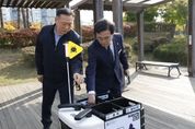 (뉴스인020 = 김성길 기자) “AI(인공지능) 시대가 빠르게 오고 있는 만큼, 주민 누구나 일상생활에서 AI를 쉽게 접하고 사용할 수 있는 환경을 조성하는 것이 중요합니다” 진교훈 서울 강서구청장은 29일 마곡하늬공원에서 열린 ‘AI 기반 자율주행 로봇서비스 실증 시연회’에서 이같이 강조했다. 옆에 있던 ㈜로보티즈AI 이선영 이사는 자율주행 로봇을 소개하며 “타 자치구에서도 자율주행 로봇서비스를 운영하고 있으나, 강서구가 타 지역보다 규모나 활용도 면에서 큰 편”이라고 설명했다. 강서구는 지난 17일부터 마곡하늬공원에 자율주행 로봇 실증사업을 추진하고 있다. 주민들의 일상에 AI 서비스를 자연스럽게 스며들게 하는 게 목적이다. 이날 진 구청장은 공원 초입부터 로봇의 이동 경로를 따라 걸으며 실증사업 운영상황을 점검했다. 로봇서비스 이용 안내가 잘 돼 있는지, 자율주행 안전에 문제는 없는지 등을 꼼꼼하게 확인했다. 자율주행 로봇서비스도 직접 시연했다. 진 구청장이 공원 내 벤치에 부착된 QR코드를 촬영해 로봇을 호출하자 얼마 지나지 않아 자율주행 로봇이 모습을 드러냈다.