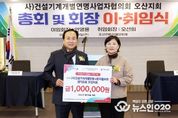 (뉴스인020 = 김성길 기자) 오산시는 사단법인 건설기계개별연명사업자협의회 오산지회가 저소득 취약계층 지원을 위한 이웃돕기 성금 100만 원을 기탁했다고 밝혔다. 이번 성금은 지난 9일 오산컨벤션웨딩뷔페에서 열린 건사협 오산지회 정기총회에서 마련된 것으로, 총회 행사의 일환으로 지역사회 나눔 실천을 위해 전달됐다. 기탁된 성금은 사회복지공동모금회를 통해 오산시 관내 취약계층의 겨울나기를 돕는 데 사용될 예정이다. 이날 정기총회에서는 지난 10년간 오산지회를 이끌어온 안영용 회장에 이어 오선희 회장이 신임 회장으로 취임했다. 오선희 회장은 “앞으로도 지역사회의 일원으로서 회원들과 함께 나눔과 봉사 활동을 지속하며 따뜻한 지역사회를 만드는 데 힘쓰겠다”고 밝혔다. 행사에 참석한 이권재 오산시장은 “건사협 회원 여러분들의 노고 덕분에 오산의 경제와 산업이 더욱 활기차게 발전하고 있으며, 더욱 안전한 산업 현장이 되어 가고 있다”며 감사의 말을 전했다. 한편, 건사협은 건설기계 사업자의 권익 보호는 물론, 국토교통부가 지정한 조종사 안전교육 등 전문 안전교육을 시행하는 단체로, 건사협 오산지회는 성금 기
