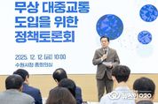 (뉴스인020 = 기자) 수원특례시는 12일 시청 중회의실에서 ‘수원시 무상대중교통 도입 정책토론회’를 열고, ‘수원형 무상대중교통’ 도입 정책 방향을 공유했다. 이날 정책토론회는 주제 발표와 종합토론으로 진행됐다. 김채만 경기연구원 선임연구위원이 ‘미래 대중교통 정책방향-쿠리치바 대중교통 사례’, 김숙희 수원시정연구원 선임연구위원이 ‘수원시 무상대중교통 도입 방향’을 주제로 발표했다. 수원시는 사회초년생 청년과 어르신의 교통비 부담을 덜어주기 위해 내년 1월 1일부터 무상대중교통 지원사업을 시작한다. 지원 대상은 19~23세 청년, 70세 이상 어르신이다(신청일 기준). 19~23세 청년이 K-패스 교통카드로 대중교통을 이용하면 한 달에 최대 2만 3100원(연 27만 7200원)을 환급한다. 어르신은 농협에서 우대 교통카드(G-PASS)를 발급받아 사용하면 실제 사용 금액에 대해 분기별 최대 6만 9300원(연 27만 7200원 한도)를 지원한다. 종합토론에는 아주대학교 오영태 교수, 한국교통연구원 박준식 본부장, 경기대학교 김정화 교수, 경기도 광역교통정책과 윤태완 과장이 참여했