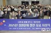 (뉴스인020 = 기자) 수원특례시는 18일 팔달문화센터 예당마루홀에서 ‘2025년 정원문화 발전 유공 시상식’을 열었다. 정원문화 발전에 기여한 시민과 단체 등에 수원시장상(47개)과 수원시의회 의장상(7개)을 수여했다. 시상은 표창장·감사패 수여, 시민정원 경연대회, 베스트 관리상, 올해의 정원인상 등 분야별로 진행됐다. 지난 10월 효원공원에서 열렸던 ‘2025년 수원시 시민정원 경연대회’ 수상팀들을 시상했다. 하나의 물방울이 만들어내는 무한한 생명의 파장을 표현한 ‘완뚝원정대’의 ‘리플(ripple) 가든’이 대상을 받았다. 어린 꽃이 꿈꾸는 산의 이미지를 담은 ‘진달래동산 꽃뫼’ 팀의 ‘어린 꽃이 꿈꾸는 뫼(산)’이 최우수상, 빛과 생명의 흐름을 표현한 ‘빛나게’ 팀의 ‘Flowing Light, Flowering Life(플로잉 라이트, 플라워링 라이프’가 우수상을 받았다. 이재준 수원시장은 “도심 속 열린 정원은 시민에게 휴식처가 되고, 기후 위기 대응에는 힘이 된다”며 “정원을 가꾼 수상자 노력에 감사하며 시민 일상에 초록이 늘도록 지원을 이어가겠다”고 말했다.
