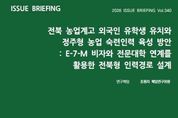 (뉴스인020 = 김성길 기자) 전북연구원은 19일 농업계고 특성화고·마이스터고 외국인 유학생을 육성형 전문기술인력(E-7-M) 비자와 연계한 새로운 인력 양성 모델인 ‘전북형 농생명 숙련인력 패스웨이’를 제안했다. 이번 이슈브리핑에서 전북연구원은 ‘농업계고 유학생(D-4-3)-전북 농생명 특성화 전문대학(D-2)-전북 농생명기업 취업(E-7-M)-인구감소지역 정주(F-2)’로 이어지는 4단계 경로를 제시했다. 또한, 기존 단기·단순노동 중심 외국인력 정책을, 전북에 장기 정착하는 농업 숙련인력을 체계적으로 육성하는 전략으로 전환해야 한다고 강조했다. 이슈브리핑은 전북이 국가식품클러스터, 스마트팜 혁신밸리, 농기계산업단지 등을 기반으로 종자·식품·스마트팜·농기계 등 농생명 인프라를 폭넓게 구축해 왔다고 설명했다. 그러나 이러한 인프라를 실제로 운영할 스마트팜 운영, 식품공정·품질, 농기계·설비 운용 등 중간기술 숙련인력 부족의 구조적 문제가 나타나고 있다고 진단했다. 그동안 농업·농촌 인력정책은 계절근로(E-8), 비전문취업(E-9) 등 단기·단순노무 공급에 치우쳐 있어, 동일 지역에