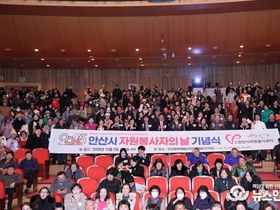 (뉴스인020 = 김성길 기자) 안산시자원봉사센터(이사장 윤영중)는 UN이 지정한 '세계 자원봉사자의 날'(12월 5일)을 기념하며, 지난 5일 안산문화예술의전당 해돋이극장에서 '제27회 자원봉사자의 날 기념식'을 성황리에 개최했다. 이날 행사는 한 해 동안 묵묵히 지역사회를 위해 헌신한 자원봉사자들의 가치를 인정하고 노고를 치하하기 위해 마련됐으며, 자원봉사자, 내빈, 후원기업 관계자 등 1,000여 명이 참석해 자리를 빛냈다. 행사의 시작은 남성 4인조 팝페라팀과 히어로합창단의 축하 무대로 막을 올렸다. 이어서 자원봉사활동의 감동적인 순간을 담은 영상을 통해 그 의미를 되새겼으며, 자원봉사자 유공표창 수여와 내빈축사로 행사를 더욱 빛냈다. 또한 부대행사로 포토존, 인생네컷, 커피&차 나눔, 탄소중립실천캠페인 등 참여자들이 함께 즐기고 추억을 남길 수 있는 다채로운 프로그램도 운영되어 참석자들의 큰 호응을 얻었다. 윤영중 이사장은 기념사에서 "오늘 수상의 영예를 안으신 모든 유공자 여러분께 다시 한번 진심으로 축하의 말씀을 전하며, “자원봉사로 행동의 힘을 만드는 안녕한 안산” 건설을 위해 24만명의 자원봉사