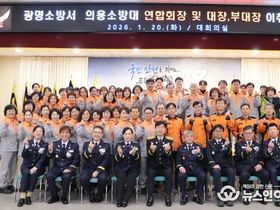 (뉴스인020 = 김성길 기자) 광명소방서는 20일 오전 10시, 광명소방서 3층 대회의실에서 의용소방대 연합회장 및 대장(부대장) 이·취임식을 가졌다. 이·취임식을 통해 배권식 광명남성의용소방대 연합회장, 김인정 광명여성 의용소방대 연합회장, 김동우 광명시장 의용소방대장, 주시영 새마을 의용소방대장, 이경미 광명시장 의용소방대 부대장이 새롭게 임명장을 받았다. 행사는 이임 의용소방대장에 대한 소방청장 감사장과 경기도지사 공로패 수여를 비롯해, 취임 연합회장 및 대장·부대장에 대한 경기도지사 임명장 수여, 의용소방대 활동 유공자 표창 등으로 진행됐다. 이어 의용소방대 기 인계·인수와 이임사, 취임사, 축사 등이 이어지며 의미를 더했다. 새로 취임한 연합회장과 각 의용소방대 대장·부대장은 “그동안 선배 의용소방대원들이 쌓아온 헌신과 봉사의 전통을 이어받아 지역사회 안전을 지키는 든든한 버팀목이 되겠다”며 “재난 현장과 각종 소방활동에서 솔선수범하는 의용소방대가 되도록 최선을 다하겠다”고 포부를 밝혔다. 유해공 광명소방서장은 격려사를 통해 “의용소방대는 재난 현장의 가장 든든한 동반자이자 지역 안전의