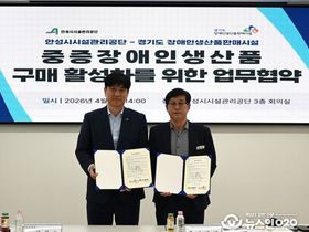 (뉴스인020 = 김성길 기자) 안성시시설관리공단은 경기도 장애인생산품판매시설과 중증장애인생산품 우선구매 활성화를 위한 업무협약(MOU)을 체결했다고 밝혔다. 이정찬 공단 이사장과 전창호 경기판매시설 법인회장 등이 참석한 이번 업무협약식은 중증장애인생산품의 판매를 촉진하고 상호 협력하여 지역사회 장애인의 경제적 자립과 사회참여를 지원하는 등 사회적 가치 실현에 기여하고자 추진됐다. 이정찬 이사장은 "이번 협약을 통해 중증장애인이 만든 제품들이 더 많은 곳에서 쓰일 수 있도록 적극 앞장서 장애인들의 고용과 고용 유지를 위해 노력하겠다"고 하며, "지역사회에서 사회적 가치 실현을 위해 지속적으로 협력해 나가겠다"고 말했다. 경기판매시설 전창호 법인회장은 "중증장애인 생산품의 우선구매 확대는 장애인들의 실질적인 자립을 위한 중요한 발걸음"이라며 "이번 협약을 통해 양 기관이 함께 더 많은 성과를 만들어 나갈 수 있기를 기대한다"고 말했다. 한편, 공단은 중증장애인생산품 법정 의무구매비율인 1.1%를 매년 초과달성하고 있으며, 최근 3년간 꾸준한 상승세를 보이고 있다.