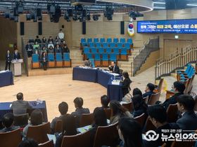 (뉴스인020 = 김성길 기자) 경기도교육청이 27일 남부청사에서 ‘함께 그리는 미래 교육, 예산으로 소통하다’를 주제로 예산학교 행사를 개최했다. 이번 행사는 교육 예산 편성이 ‘우리 아이들의 미래를 위한 설계’임을 재확인하고, 생생한 현장의 목소리를 경청하며 함께 소통하고자 마련했다. 행사에는 임태희 교육감을 비롯해 주민참여예산 자문위원과 교육청 직원 150여 명이 참석해 자유롭게 이야기를 나눴다. 주요 내용은 ▲주민참여예산 활동 우수사례 공유 ▲경기교육 정책 및 예산 안내 ▲임 교육감과의 토크콘서트 등으로 구성했다. 특히 토크콘서트에서는 임 교육감과 참석자가 함께 ▲학생 정서 및 인성 돌봄(케어) ▲미래 역량 및 진로 교육 ▲교육의 복지 및 포용성 강화 ▲학교 환경 및 안전 인프라 구축 분야 등에 다양한 질문과 답변을 나눴다. 토크콘서트 이후 참석자들은 경기교육 정책과 예산을 이해하는 시간을 갖고 예산에 따른 정책 추진 방향을 공유하는 자리를 이어갔다. 행사에 참여한 한 자문위원은 “주민참여예산과 관련해 직접 현장의 목소리를 듣고 소통하려는 교육청의 모습에서 경기교육의