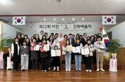 (뉴스인020 = 김성길 기자) 재단법인 아천문화교류재단(ACEF)이 주최-주관한 '제12회 아천효문화예술제’가 11월 1일 오후3시 아천문화교류센터에서 시상식이 개최됐다. 이날 행사에는 부모사랑 나라사랑의 올바른 가치관을 심어주기 위해 문화예술 부문의 우수한 인재들을 발굴 시상하고 올해로 12회를 맞았다. 시상식은 이승훈의 사회로 식전행사에 노 오케스트라의 연주를 시작으로 개회식, 국민의례등의 순서로 진행되었으며, 재단법인 아천문화교류재단 이사장인 성민스님은 인사말을 통하여 로마 제국시대의 철학자, 정치가, 작가, 그리고 스토아 철학의 대표인물인 루키우스 안나이우스 세네카의 말을 빌어서 인생은 철학이고, 철학은 삶이라고 하면서 평안속에서 행동으로 옮기는 삶이 진정으로 미래를 꿈꾸는 삶이라고 이야기하면서 수상자분들의 축하의 말씀과 더블어 그들의 삶이 희망과 꿈이 넘치기를 믿는다고 피력했다. 수상과 관련, 최고상인 국회의장상에는 고봉국님, 특별상인 문화체육관광부장관상에는 목포애향중학교 송은유학생, 학생부종합대상에는 한밭여자중학교 이인혜학생, 서울특별시장상에는 정호겸, 권수지님. 경기도지사상에는 박상우, 윤세화님, 인천시
