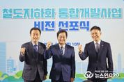 (뉴스인020 = 김성길 기자) 경기도의회 건설교통위원회 김성수 의원(더불어민주당, 안양1)은 12일 안양역에서 열린 ‘철도지하화 통합개발사업 비전선포식’에 참석하여 경부선 안양 구간의 조속한 철도지하화사업 대상지 선정을 촉구하고 강력한 추진 의지를 피력했다. 경기도가 주관한 이날 선포식에는 김성수 의원을 비롯해 김동연 경기도지사, 이계삼 안양시 부시장, 지역 주민들이 참석했다. 행사에서는 ‘지도에는 있지만 쓸 수 없었던 지상 철도 부지를 도민에게 돌려드린다’는 비전과 함께 경부선 안양 구간 철도지하화 사업의 추진 방향이 발표됐다. 김성수 의원은 축사를 통해 “경기도의회는 전국 최초로 철도지하화사업기금 조례를 제정하는 등 경기도와 안양시가 경부선 철도지하화사업을 힘 있게 추진할 수 있는 제도적 기반을 마련하고 있다”면서 “철도지하화사업 시작까지 ‘종합계획 선정’ 마지막 한 걸음을 남겨둔 만큼, 경기도의회-경기도-안양시가 하나 되어 멈춤 없이 노력해 온 결실을 맞이하자”고 목소리를 높였다. 이어 김 의원은 “수십 년간 안양을 동서로 단절시켰던 경부선 철도는 그동안 지역 발전의 큰 걸림돌이었다”고 지적하며, “이번