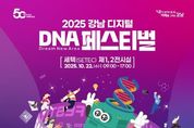 (뉴스인020 = 김성길 기자) 꿈이 모이는 도시, 미래를 그리는 강남구가 오는 10월 22일 오전 9시부터 오후 5시까지 세텍(SETEC) 제1‧2전시실에서 ‘2025 강남 디지털 DNA(Dream New Area) 페스티벌’을 개최한다. 구는 2023년부터 ‘학교로 찾아가는 디지털 미래인재’ 교육 과정을 개발해 운영해 오고 있으며, 여기에 특수학교를 포함한 관내 61개 초·중학교가 참여하고 있다. 올해 상반기에는 42개교 학생 7,300여 명이 이 교육을 이수했다. 이번 페스티벌은 이러한 교육 성과를 공유하고, 학생들이 익힌 기술을 선보이며 미래 기술에 대한 관심을 확장할 기회로 기획됐다. 특히 올해는 개청 50주년을 기념해 프로그램 규모를 대폭 확대해 초·중학생 약 3,500명이 참여할 예정이다. 페스티벌은 크게 ▲AI 경진대회 ▲50주년 기념 AI 체험·전시존 ▲진로직업·미래기술‧평생학습 체험부스 ▲특별강연으로 구성됐다. AI 경진대회는 ‘상상과 기술이 만나는 곳, 2025 강남 디지털 미래인재 챌린지’라는 이름으로 개최되며, 초등학생을 대상으로 한 AI 자율주행차·드론대회와 중학생 대상의 AI 헤리티지