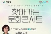 (뉴스인020 = 김성길 기자) 서울 강동구는 오는 3월 7일 오후 2시, 강동중앙도서관 다목적홀(양재대로84길 63)에서 '2026년 찾아가는 문화콘서트' 1회차를 개최한다고 6일 밝혔다. '2026년 찾아가는 문화콘서트' 1회차는 강동구립 국악관현악 팀 공연과 역사 강연이 어우러진 복합 문화프로그램으로, 지역주민이 일상 가까이에서 수준 높은 인문학과 문화예술을 함께 접할 수 있도록 마련됐다. 이날 강연은 노혜경 교수가 ‘영조의 르네상스 리더십’을 주제로 진행한다. 영조·정조 시대를 ‘조선의 르네상스’로 조명하고 서양 르네상스와의 공통점과 차이점을 비교하며, 변화와 개혁의 시대를 이끈 리더십의 의미를 살펴볼 예정이다. 이를 통해 오늘날 사회에서 요구되는 리더의 역할에 대해 생각해 보는 시간을 갖는다. 강연을 맡은 노혜경 교수는 현재 호서대학교 혁신융합학부 교수로, ‘벌거벗은 한국사’, ‘KBS 역사스페셜’ 등 다수의 방송에 출연해 대중과 소통해 왔다. 또한 『더 리더: 영조 그리고 정조』, 『조선 후기 중앙관청의 숨은 실세, 경아전』 등 여러 저서를 집필했다. 참여 대상은 지역주민 250여 명이며