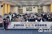 (뉴스인020 = 김성길 기자) 강원RISE센터는 2월 24일 강원대학교 정강홀에서 '강원RISE 지·산·학 성과공유회'를 개최했다. 이번 행사는 대학과 지역의 연계를 통해 지역 혁신을 추진하는 강원 지역혁신중심 대학지원체계(RISE) 사업의 핵심 프로그램인 G-Lab(지역 문제해결 공동연구소)의 1차년도 추진 성과를 공유하고 지·산·학이 함께 만들어 온 협력 모델을 확산하기 위해 마련됐으며, 도 및 시군 관계자와 대학 RISE사업단 등 100여 명이 참석했다. 이날 성과공유회는 G-Lab 운영 방향과 교육 혁신 사례를 주제로 한 기조강연을 시작으로 지역과 연계한 대학 및 지자체의 우수성과 발표가 이어졌으며 강원대학교, 국립강릉원주대학교, 한림대학교, 동해시, 강원도립대학교가 차례로 발표를 진행하며 운영 성과를 공유했다. 또한 행사장 입구에는 G-Lab 추진 성과를 담은 홍보 배너를 전시하여 참석자들의 이해를 돕고, 기관 간 교류를 통해 협력 네트워크를 강화하는 계기를 마련했다. 김미숙 강원RISE센터장은 “현장에서 검증된 우수 사례를 바탕으로 대학과 지자체 간 협력이 더욱 활성화될 수 있도록 지