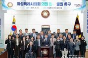 (뉴스인020 = 김성길 기자) 화성특례시의회는 12일 제246회 제2차 정례회 본회의에서 '화성특례시의회 의원 정수 관련 제도 개선 촉구 건의안'을 원안 가결했다. 이번 안건은 배정수 의장의 대표 발의했으며, 25명의 전체 의원 모두가 필요성에 공감해 한마음으로 추진했다는 점에서, 지방의회 의원 정수산정 방식의 구조적 문제를 개선해야 한다는 의지를 담고 있다. 본회의 산회 후에는 의원들이 함께 건의안 낭독 퍼포먼스를 진행하며 제도 개선의 필요성과 취지를 시민들에게 공유했다. 전국 최고 수준의 의원 1인당 인구 부담 화성특례시의회는 현재 의원 1인당 약 4만 2천 명의 시민을 대표하고 있어 전국 평균(약 1만 7천 명)과 경기도 평균(약 3만 명)을 크게 웃도는 상황에 놓여 있다. 이는 특례시 중에서도 가장 높은 수준으로, 급격한 인구 증가에도 불구하고 의회 구성은 사실상 정체돼 있어 대표성과 감시 기능이 충분히 발휘되지 못하는 구조적 한계를 보여주고 있다. 특례시 전환 이후 확대된 행정수요 반영 필요 화성특례시는 인구 100만을 넘어 특례시로 지정된 이후 도시 규모와 행정수요가 빠르게