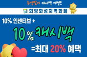(뉴스인020 = 김성길 기자) 화성특례시가 추석 명절을 맞아 9월 22일부터 10월 4일까지 ‘희망화성지역화폐 특별 캐시백 이벤트’를 운영한다. 이번 이벤트는 행사 기간 중 희망화성지역화폐로 3만 원 이상 결제 시 결제금액의 10%를 캐시백으로 돌려주는 이벤트로, 1인당 최대 3만 원(결제금액 기준 30만 원)까지 캐시백을 받을 수 있다. 시는 ‘희망화성지역화폐’ 충전 시 충전 금액의 10%를 인센티브로 상시 제공하고 있으며, 지난 1일부터 10월 31일까지는 인센티브가 지급되는 한도금액을 월 100만 원으로 확대해 월 최대 10만 원까지 인센티브를 제공하고 있다. 여기에 캐시백 이벤트까지 더해지면 시민들은 지역화폐 결제금액 기준 3만 원부터 30만 원까지는 20% 할인 효과를 누릴 수 있게 된다. 캐시백은 지역화폐 충전 시 지급된 인센티브를 제외한 본인 충전금 사용분에 한해 적용되며, 예산이 소진될 경우 이벤트는 조기 종료될 수 있다. 지급된 캐시백은 연 매출 12억 원 이하 가맹점에서만 사용할 수 있으며, 사용기한은 2025년 12월 31일까지다. 시는 코로나19 이후
