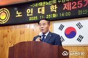 (뉴스인020 = 김성길 기자) 수원특례시의회는 25일, 권선구지회 대강당에서 열린 제25기 권선노인대학 졸업식에 참석하여 대한노인회 어르신들의 졸업을 축하했다. 이재식 의장은 이날 축사에서 “늦었다고 생각하지 않고 꾸준히 배우고 도전하신 어르신들의 모습은 우리 모두에게 큰 감동과 귀감이 된다”며, “오늘의 졸업은 끝이 아니라 앞으로 더 즐겁고 활기찬 삶을 향해 가는 새로운 출발”이라고 강조했다. 이어 “졸업을 다시 한번 축하드리며 어르신들의 앞날에 늘 행복이 함께하길 기원한다”고 덧붙였다. 이번 졸업식은 어르신들의 성취를 축하하고, 평생 학습과 사회 참여를 격려하는 의미 있는 자리로 진행됐다. 행사는 노인강령 낭독, 학사보고, 졸업장 수여, 학생대표 사은사, 노인대학장의 회고사 등으로 이어지며, 어르신들의 학업과 사회 참여에 대한 노고와 열정을 되새기는 시간으로 마련됐다.