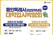 (뉴스인020 = 김성길 기자) 용인특례시는 12월 1일 오전 10시부터 오후 5시 30분까지 시청 에이스홀과 종합민원상담창구에서 ‘하반기 2026학년도 대학입시박람회’를 연다고 25일 밝혔다. 이번 박람회는 예비수험생들에게 변화하는 입시 환경에 필요한 정보를 제공하고자 마련됐다. 입시전략 특강과 고3 수험생들의 수능성적을 분석해 학생 개인에 최적화된 대입전략을 지원하기 위한 진학컨설팅이 진행된다. 특강은 시청 에이스홀에서 1부와 2부로 나누어 운영되며, 초등학생부터 고등학생까지 예비수험생과 학부모 등 각 450명이 참여할 수 있다. 1부는 오전 10시~12시까지 최승후 강사가 ‘용인특례시 학생을 위한 의학·약학계열 진학과 학생부 전략’을 주제로 강의한다. 2부는 오후 2시~4시까지 윤윤구 강사가 ‘고교학점제 시대에 맞는 대학입시 트렌드’를 주제로 대입환경 변화에 따른 수시·정시대비 전략을 안내한다. 시청 1층 종합민원상담창구에서는 오후 1시부터 5시 30분까지 ‘정시대비 1:1 진학컨설팅’이 진행된다. 총 120명의 고3 학생과 학부모가 참여할 수 있으며, 수능성적표와 학