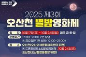 (뉴스인020 = 김성길 기자) 오산시는 오는 10월 17일부터 26일까지 매주 금·토·일 저녁, 오산천(오색문화체육센터 뒤편)에서 시민들이 야외에서 영화를 즐길 수 있는 '2025 제3회 오산천 별밤영화제'를 개최한다고 밝혔다. 이번 영화제는 남녀노소 누구나 즐길 수 있는 총 10편의 애니메이션과 영화를 상영하며, 오산천을 방문하는 시민이라면 누구나 자유롭게 관람할 수 있다. 특히 올해는 관람객 편의를 위해 ‘배달음식 픽업존’을 운영하여, 휴대폰 앱으로 주문한 음식을 지정된 장소에서 간편하게 수령할 수 있다. 관람객들은 돗자리나 방석 등을 지참해, 자연 속에서 맛있는 음식과 함께 여유로운 영화 관람을 즐길 수 있다. 시 관계자는 “도심 속 자연과 문화가 조화를 이루는 오산천에서 열리는 이번 별밤영화제가 시민들에게 힐링과 특별한 문화 체험의 기회가 되길 바란다”고 전했다.
