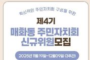 (뉴스인020 = 김성길 기자) 시흥시 매화동 행정복지센터는 12월 9일까지 ‘제4기 매화동 주민자치회’ 신규위원 30명을 공개 모집한다. 신청은 매화동 행정복지센터 방문 또는 전자우편을 통해 가능하다. 매화동 주민자치회는 지역의 다양한 현안에 대해 주민 스스로 자치계획을 수립하고, 주민총회를 통해 실행 방향을 결정하는 주민대표기구다. 제3기 매화동 주민자치회의 임기(2024.01.01.~2025.12.31.)가 만료됨에 따라 '시흥시 주민자치회 및 주민자치센터 설치·운영에 관한 조례'에 기반한 매화동 발전의 혁신적인 마인드를 가진 제4기 신규위원을 선발하며 위원 임기는 2년이고 중도 해촉이 가능하다. 신청 자격요건은 ▲매화동에 주민등록이 돼 있는 사람 ▲매화동에 사업장 주소를 두고 있는 사업장에 종사하는 사람 ▲매화동에 소재한 학교, 기관, 단체 등에 속한 사람 ▲영주의 체류자격을 갖춘 외국인으로서 매화동의 외국인등록대장에 등재된 사람이며, 타 동 주민자치회 위원이나 매화동 관계단체 소속 주민은 지원할 수 없다. 선발된 주민자치회 위원들은 매화동의 발전 방향을 논의하고 자치계획을 수립·집행하는 등