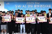 (뉴스인020 = 김성길 기자) 전라남도는 청소년의 창의적 문제해결력과 인공지능 융합 역량을 한층 강화하는 위한 2025 전남 SW·AI 코딩 로봇경진대회를 지난 10월 31일까지 이틀간 나주 동신대학교에서 개최했다고 밝혔다. ‘도시의 문제를 해결하는 스마트 로봇’을 주제로 열린 이번 대회는 전남도, 전남도교육청, 나주시가 공동으로 주최하고 (재)전남정보문화산업진흥원이 주관했다. 전남 초·중·고등학생 30개 팀(90명)이 2인 1조로 참가해 일상에서 발견한 문제 해결을 위한 아이디어를 바탕으로 로봇 코딩 실력을 겨뤘다. 평가는 팀별 아이디어 과제 발표, 직접 제작한 로봇 경기로 진행됐다. 경진대회는 교구재를 사전 배부하고 교육해 경험이 부족한 학생들도 쉽고 즐겁게 참여할 수 있도록 하고, 소속 학교 지도교사의 피드백을 통해 로봇과 코딩에 대한 이해도를 높였다. 초등, 중등, 고등 부문별로 각각 대상 1팀, 최우수상 1팀, 우수상 1팀을 선정, (재)전남정보문화산업진흥원장상과 상금이 수여됐다. 대상은 ▲초등부 여수 여도초등학교(Y.E.S.1) ▲중등부 나주 영산중학교(평가문제집) ▲고등부