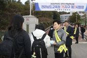 (뉴스인020 = 김성길 기자) 전라남도교육청이 2026학년도 대학수학능력시험일인 13일 시험장을 찾아 수험생을 응원했다. 김대중 교육감을 비롯한 도교육청 간부들은 이날 오전 75지구 제7시험장인 순천복성고등학교 교문 앞에서 시험을 치르기 위해 들어서는 수험생들을 반갑게 맞이하며 최선을 다해줄 것을 당부했다. 순천복성고 현장에는 김 교육감과 박철완 중등교육과장, 허동균 순천교육지원청교육장, 강종수 순천복성고 교장 등이 “파이팅”을 외치며 수능 대박을 기원했다. 이날 오전 황성환 부교육감도 교육청 간부들과 함께 문태고등학교를 방문해 수험생들을 격려했다. 김대중 교육감은 “모든 수험생 여러분, 정말 수고 많았다. 오늘은 여러분의 날이다”며 “결과에 대한 부담은 내려놓고, 그동안의 노력이 만들어준 자신감을 믿으며 차분히, 끝까지 최선을 다하길 바란다”고 말했다. 한편, 이날 목포·여수·순천·나주·광양·담양·해남 등 7개 시험지구, 총 46개 시험장에서는 1만 4,952명의 수험생이 2026학년도 대입 수능시험을 치른다.
