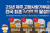 (뉴스인020 = 김성길 기자) 제주특별자치도는 올해 고향사랑기부금이 4일 기준 전국 최초로 단년도 40억 원(40억 700만 원, 3만 9,454건)을 넘어섰다고 밝혔다. 이는 전년 동기 대비 모금액 114%(19억 원 → 40억 원), 모금 건수 134%(1만 6,871건 → 3만 9,454건) 증가한 수치로, 제주 고향사랑기부제가 시행 3년차에 접어든 올해도 독보적 성장세를 이어가고 있다. 제주도는 2023년 18억 원(모금 건수 전국 1위)으로 전국 2위, 2024년 36억 원으로 전국 1위를 기록했으며, 올해도 12월 초 40억 원을 넘어서며 선도 지자체로 자리매김했다. 이러한 성과는 △철저한 답례품 품질관리 △전국 최초 기부자·연속기부자 예우정책 △제주 가치 보존 기금사업 확대 등 차별화 전략이 주요 요인으로 분석되고 있다. 제주도는 지역 특산물 중심의 고품질 답례품 발굴과 신속 배송, 민원 대응 강화로 기부자 만족도를 높이고 있으며, 제주경제통상진흥원과 협업해 모니터링 체계를 고도화하는 등 답례품 관리의 전문성을 강화하고 있다. 11월 13일부터 답례품으로 연말 한정 ‘스페