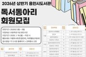 (뉴스인020 = 김성길 기자) 용인특례시는 상반기 독서동아리 회원 409명을 모집한다고 6일 밝혔다. 상반기 독서동아리는 동부도서관 5개 도서관(포곡·동백·모현·청덕·남사) 중부도서관 6개 도서관(기흥·구성·보라·흥덕·서농·영덕) 서부도서관 5개 도서관(수지·죽전·상현·성복·동천) 등 총 16개 도서관에서 운영된다. 독서동아리는 일반부(37개)와 초등부(16개) 등 총 53개 동아리로 이뤄졌다. 한 동아리당 10명 내외 인원이 참여한다. 일반부는 회원이 자율적으로 도서를 선정해 함께 읽고 의견을 나누거나 토론하는 형식으로 운영된다. 초등부는 도서관에서 추천하는 책을 중심으로 독후감 쓰기, 만들기, 퀴즈 등 다양한 독후 활동이 진행된다. 상반기 모임은 3월부터 6월까지 운영된다. 도서관 관계자는 “독서동아리 활동은 책을 통해 서로의 생각을 나누고 삶의 지혜를 쌓을 수 있는 뜻깊은 시간”이라며 “많은 시민이 참여해 책 읽는 즐거움을 함께 나누시길 바란다”고 말했다.