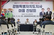 (뉴스인020 = 김성길 기자) 김진태 강원특별자치도지사는 '강원특별법' 군사특례를 활용한 첫 권한 행사로 지난 3월 군사규제 개선 성과를 거둔 철원군을 11월 14일 방문해 도지사 ‘마을진담회’(진솔한 +간담회)의 네 번째 자리를 마련했다. 이번 진담회는 주민과의 소통을 강화하고, 현장의 의견을 보다 폭넓게 듣기 위해 철원군을 김화·갈말권역과 철원·동송권역의 두 개 권역으로 나누어 진행했다. 이날 행사에는 김진태 지사를 비롯해, 한기호 국회의원(춘천, 철원, 화천, 양구을), 이현종 철원군수, 김정수·엄기호 도의원, 이장, 주민자치위원, 노인회 등 각계각층의 주민 300여 명이 참석해 뜨거운 관심 속에 진담회가 시작됐다. 이현종 철원군수는 “이번 방문은 지사님께서 철원을 아끼고 주민의 애로사항을 듣고 신속히 반영하고자 하는 마음의 표현”이라고 말했다. 이어 “철원군은 군사규제 100만평 완화, 농업진흥지역 3만 4천 평 해제 등 규제 개선의 가시적 성과를 이뤄냈다”고 설명했다. 또한, “수돗물 하수처리시설 개선을 위해 도비 약 60~70억 원을 지원받아 추진 중이며, 신철원과 와수 지역은 그동안
