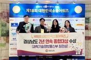 (뉴스인020 = 김성길 기자) 경상남도는 제18회 대한민국소통어워즈에서 2년 연속 ‘종합대상’인 과학기술정보통신부 장관상을 수상하며, 공공 소통을 선도하는 지자체로서의 위상을 굳혔다. ‘대한민국소통어워즈’는 한국인터넷소통협회가 주관하고 과학기술정보통신부 등이 후원하는 국내 최고 권위의 디지털 소통 및 마케팅 시상식으로, 기업과 공공기관의 온라인 소통 역량을 종합적으로 평가해 수여한다. 경남도는 지난해에 이어 올해도 ‘종합대상’을 차지하며 2년 연속 영예를 이어갔다. 13일 오후 서울 프레스센터에서 열린 시상식에서 도는 ‘종합대상’을 포함해 △인터넷소통대상(광역지자체 부문), △소셜미디어대상(광역지자체 부문), △디지털콘텐츠대상(ESG 부문) 등 총 4개 부문에서 대상을 수상했다. 이와 함께 지난달 17일 열린 ‘제15회 2025 대한민국SNS대상’에서도 광역지자체 부문 ‘최우수상’을 3년 연속 수상하며, 올해만 사회관계망서비스(SNS) 관련 어워즈 5개 부문에서 수상하는 쾌거를 이뤘다. 경남도 공식 유튜브 채널 ‘경남TV’는 지난해 실버버튼을 획득한 데 이어 올해 10월 구독자 20만