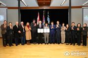 (뉴스인020 = 김성길 기자) 광양시는 시 대표단이 11월 1일부터 6일까지 캐나다 메트로 밴쿠버 랭리타운십을 방문해, 4일(현지시간) 랭리이벤트센터에서 랭리타운십과 국제 우호도시 협약을 공식 체결했다고 밝혔다. 이날 체결식에는 정인화 광양시장, 최대원 광양시의장, 에릭 우드워드 랭리타운십 시장, 랭리타운십 시의회 의원 및 주요부서․기관 관계자와 광양시 대표단 등 30여 명이 참석해 양 도시의 교류 의지를 확인했다. 협약체결에 앞서 양 도시는 캐나다 최초로 한국전쟁 참전용사를 기리기 위해 설치된 ‘가평석(Gapyeong Stone)’ 앞에서 헌화 및 참배를 진행하며 양국의 우의를 다졌다. 행사는 주요 참석자 소개를 시작으로 양 도시 시장과 시의장의 인사말, 도시 홍보영상 상영, 협약서 서명, 기념품 교환, 기념촬영 순으로 이어졌다. 이날 함께 열린 ‘광양시 홍보사진전’에는 광양의 주요 명소와 산업, 자연경관을 담은 사진이 전시돼 현지 참석자들의 큰 관심을 끌었다. 양 도시는 이번 협약을 통해 상호이해와 우정을 증진하고 교육·문화·경제 등 다양한 분야의 교류를 확대하기로 했다. &nbs
