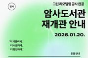 (뉴스인020 = 김성길 기자) 강동구 강동구립암사도서관이 약 6개월간의 ‘친환경 그린 리모델링’ 공사를 마치고 오는 1월 20일 새롭게 문을 연다고 19일 밝혔다. 2010년 개관한 암사도서관은 지난 2023년 국토교통부 주관 ‘공공건축물 그린리모델링’ 공모 사업에 선정됐다. 이에 구는 2025년 7월부터 12월까지 노후화된 건축물의 에너지 성능을 개선하고 기후 변화에 대응하기 위한 전면적인 환경 정비 공사를 실시했다. 이번 리모델링의 핵심은 친환경 에너지 효율화와 이용자 편의 증대에 초점을 맞췄다. 우선 건물의 내·외벽 단열을 대폭 보강하고 고성능 창호와 최신 냉난방 시스템을 도입하여 에너지 소비를 획기적으로 줄였다. 또한, 화장실에 순간온수기를 설치하는 등 구민들이 체감할 수 있는 세심한 부분까지 설비를 개선했다. 또한, 내부 공간을 이용자 중심으로 재배치하여 쾌적한 독서 환경을 조성했다. 강동구는 이를 통해 탄소 중립 사회로 나아가는 ESG 경영을 실천함과 동시에, 지역 주민들에게 한층 수준 높은 독서 문화 공간을 제공할 수 있게 됐다. 재개관을 기념하는 풍성한 프로그램도 운영된다. 1월 2
