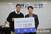 (뉴스인020 = 기자) 수원시 권선구는 지난 13일, 관내 스마일자동차(대표 우영진)에서 어려운 이웃을 돕기 위한 후원금 250만원을 기탁했다고 밝혔다. 수원시 권선구 고색동에 위치한 스마일자동차는 지난 2025년 5월경, 도이치오토월드와 함께 영남지역 산불 피해 복구를 위해 3,000만원을 후원하는 등 꾸준한 나눔 활동을 이어오고 있다. 지금까지 지역 내 취약계층을 위해 총 3,250만원 상당의 후원을 진행했다. 우영진 스마일자동차 대표는 “생활이 어려운 가정에 조금이나마 도움이 되기를 바라는 마음으로 후원금을 전달했다”라며 “앞으로도 지역 주민들과 따뜻함을 나누는 기업이 되겠다”라고 말했다. 이에 김종석 구청장은 “스마일자동차의 지속적인 나눔 실천에 깊이 감사드린다”라며 “구민들의 가정이 더 행복할 수 있도록 권선구도 함께 노력하겠다”라고 전했다.