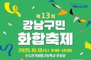(뉴스인020 = 김성길 기자) 꿈이 모이는 도시, 미래를 그리는 강남구가 오는 10월 18일 오전 9시부터 오후 2시까지 수도전기공업고등학교 운동장에서 ‘제13회 강남구민화합축제’를 개최한다. 구민과 선수단 등 약 7,500명이 참여할 예정이며, 소통과 화합을 바탕으로 건강한 지역사회를 만드는 의미 있는 자리가 될 것으로 기대된다. 행사는 점핑공연팀의 식전공연으로 시작해, 국립국악고등학교 학생들의 대취타 공연을 선두로 한 22개 동 선수단의 입장 퍼포먼스가 펼쳐진다. 각 동은 지역별 특색을 살린 창의적인 입장식을 준비해 이목을 끌 예정이다. 이어 개회선언과 축사, 선수단 선서 순으로 본 행사가 진행된다. 체육 경기는 단체 줄넘기, 오재미 농구, 대형 바통 릴레이 달리기, 풍선 높이 쌓기, OX 퀴즈 등 총 5종목으로 구성됐다. 세대를 아우를 수 있는 종목 중심으로 구성해 다양한 구민의 참여를 유도하며, 참가자들이 협동심과 팀워크를 발휘할 수 있도록 기획됐다. 현장에는 다양한 부대 프로그램도 마련됐다. ▲인생네컷 촬영 ▲페이스 페인팅 ▲핸드폰 꾸미기 체험 등으로 구성된 이벤트 체험존을 비롯해 ▲자생한방병원의 의