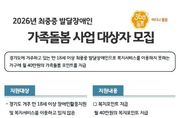 (뉴스인020 = 김성길 기자) 경기도가 2026년 최중증 발달장애인 가족돌봄 사업 대상자 145가구를 12월 2일까지 모집한다. 최중증 발달장애인이란 도전적 행동이 심하고 일상생활에 제약을 지닌 통합돌봄이 필요한 발달장애인이다. 경기도는 돌봄이 필요한 모든 도민들을 대상으로 누구나, 언제나, 어디나 빈틈없는 돌봄을 제공하는 360도 돌봄사업을 하고 있다. 최중증 발달장애인 가족돌봄 사업은 이 가운데 ‘어디나 돌봄’ 사업의 하나로 진행한다. 2024년 4월 처음 가족돌봄 사업을 시행한 이래 매달 210가구에 월 40만 원씩 돌봄포인트를 제공해 생필품 구입부터 여가활동 지원까지 다양한 부분에서 사용하여 장애인 당사자와 가족의 생활안정에 기여하고 있다. 2026년 최중증 발달장애인 가족돌봄 사업의 지원 대상은 경기도에서 거주하는 복지관, 직업재활서비스 등 복지서비스 미이용으로 돌봄사각지대에 놓인 만 18세 이상 발달장애인이다. 선정 시 월 40만 원 가족돌봄포인트를 1년간 지원하고 지속적인 모니터링으로 복지서비스와 대상자를 연계하는 서비스를 제공한다. 2026년 모집인원은 145명으로 전년과 다르게 모